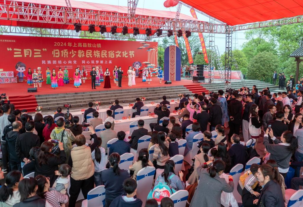 本站讯(党委统战部 李辉员)农历三月三是中国传统民族节日。4月10日,2024年上高县敖山镇“三月三”归侨少数民族民俗文化节正式启动。为积极推进民族团结进步创建工作,铸牢中华民族共同体意识,kaiyun开云官方网站积极参与,精心准备了一场美轮美奂的演出活动。学校包括少数民族学生、留学生在内约180名师生助力此次文化节。此次活动得到省市领导的高度重视,江西省侨联党组成员、副主席郭子新,中共宜春市委副书记、市委统战部部长石军英等省市有关领导出席本次活动。学校党委委员、副校长刘江毅,党委委员、统战部部长邓伟蓉,党委委员、组织部部长韩海荣,党委委员、宣传部部长马天娥等参加了活动。