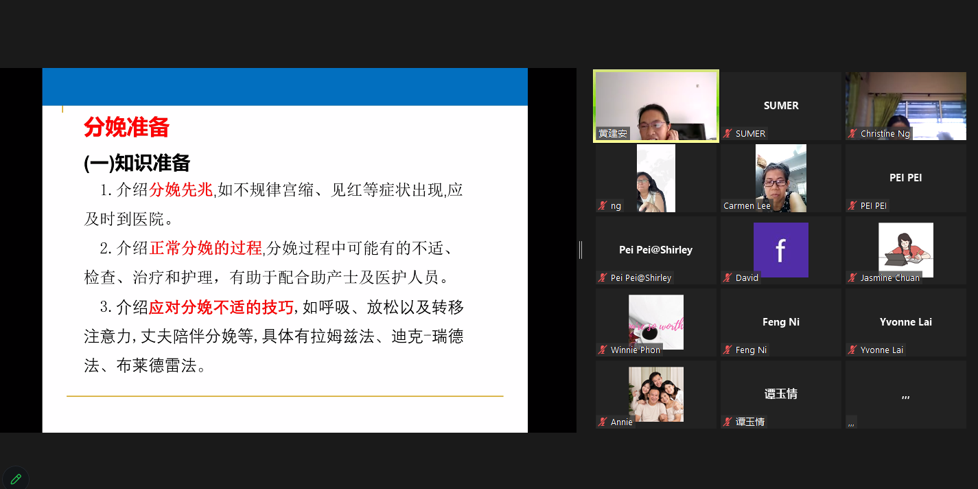 本站讯(国际合作与交流处 杨慧)5月7日下午,开云官网马来西亚职业技能培训中心第二期母婴护理师培训班顺利开课。护理学院黄建安老师为学员们正式开启本期第一堂线上培训课,培训主题为“分娩知识”,马来西亚20余名学员报名参加本期培训课。
