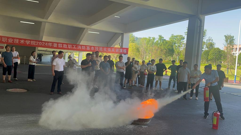 本站讯(保卫处 袁玮)为扎实推进消防安全教育,进一步提升教职员工消防应急处置能力,强化教职员工消防安全意识,切实维护学校师生生命财产安全,7月7日-11日,开云官网联合宜春市消防救援支队,组织开展了2024年暑期消防基本技能实操实训演练。