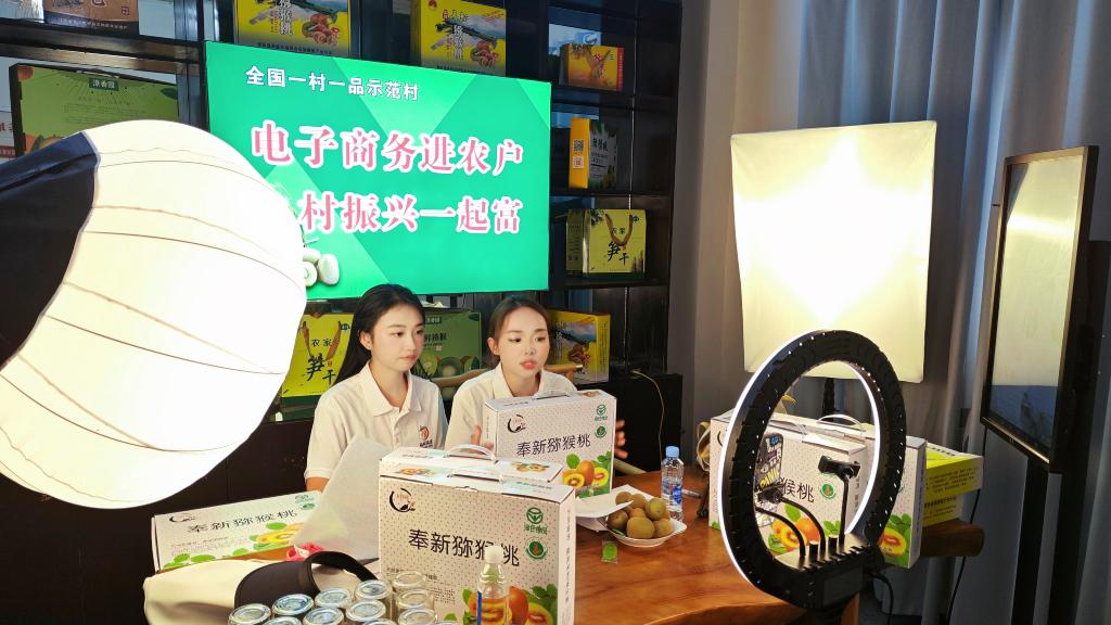 奉新是文化遗产千年古县,赤岸镇城下村是全国“一村一品”示范村、“十四五”乡村振兴示范村、奉新县万亩猕猴桃生态园示范基地。实践团深入天工展览馆、城市书房、九天阁、宋应星牌楼村等奉新的文化地标景点,实地探访历史遗迹,追溯典籍诞生之源,沉浸式体验天工农耕文化;近距离了解农作物的生长加工,学习古法技艺与现代工艺的创新结合,传承中华优秀传统文化,深刻感悟工匠精神。在猕猴桃家庭果园,实践团与农户们面对面交流猕猴桃成熟的相关知识,帮助农户采摘新果,感悟劳动的真谛和收获的来之不易,并运用电子商务、电商直播等专业技能,直播售卖猕猴桃,为乡村振兴贡献青春力量。