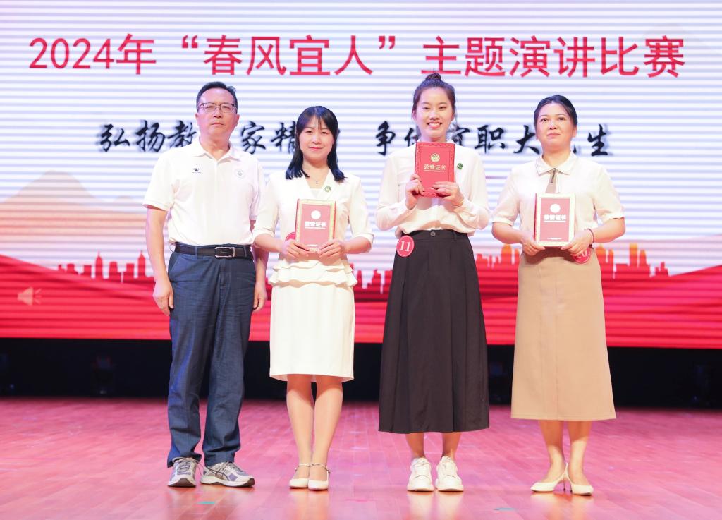 本站讯(党委教师工作部 刘娜)弘扬教育家精神,争做宜职大先生。9月24日下午,开云官网在出彩大会堂举办2024年“春风宜人”主题演讲比赛决赛,党委书记任军,党委副书记、校长李铁刚等党政班子成员出席,七百余名教职工及学生代表到场观摩。