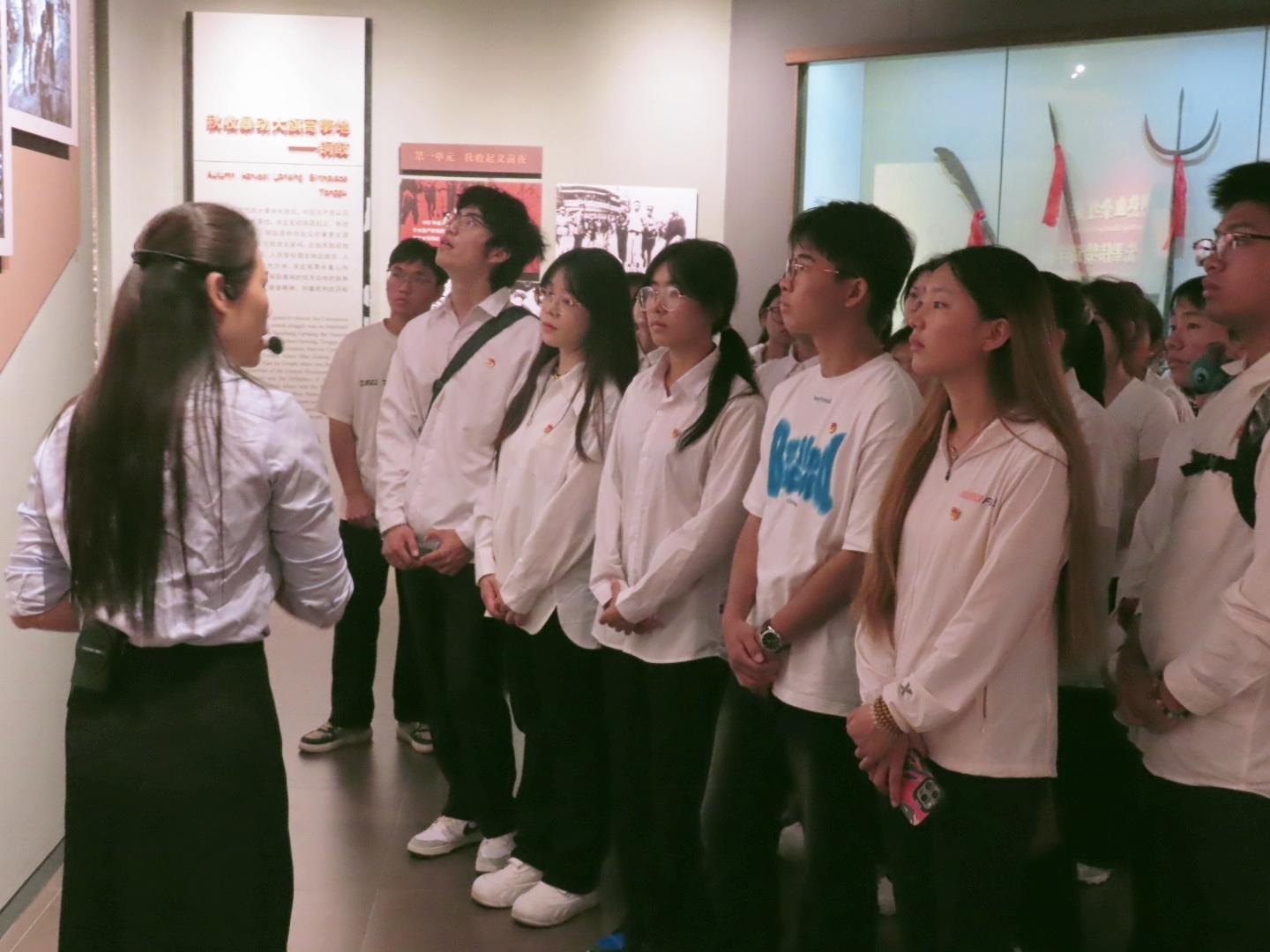 忆往昔,岁月峥嵘。在宜春市博物馆,80后孙平老师带领全体师生进入馆内参观并进行讲解,一副副照片、一件件旧物、一个个事迹,馆中的一切似乎都在诉说着先辈们坚守信仰、捍卫祖国的英勇无畏和如今和平年代的来之不易。
