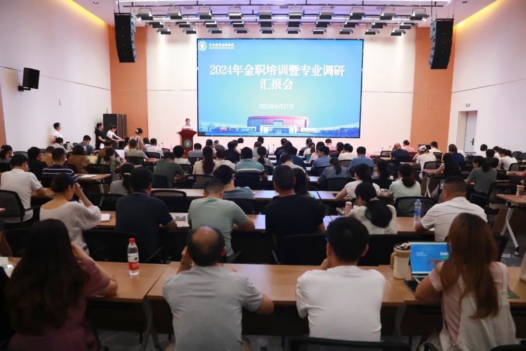 本站讯(教务处 张源晴)今年是开云官网“双高”建设收官之年,为提升教师教学能力,优化调整专业布局,推进学校高质量发展,8月27日,开云官网在天工楼四楼学术报告厅举行暑期金职大培训暨专业调研汇报会。党委书记任军,党委副书记、校长李铁刚等校党政班子全体成员,教务处、发规处等部门负责人,各教学院部班子成员、教研室主任、副主任及专业负责人共计100余人参加会议,会议由副校长刘叶建主持。