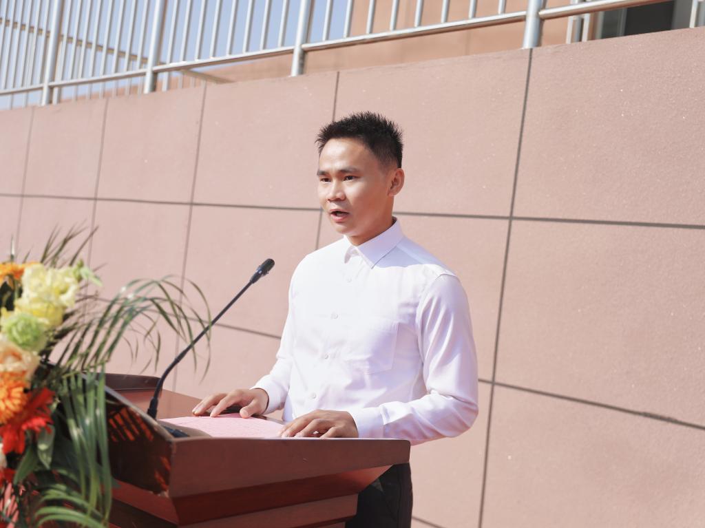 教师代表胡杰博士表示,教师是知识的传导者、创新的引领者、教育变革的推进者,希望新时代的高校教师以满腔的热忱与非凡的智慧,引领青年学子专心致志、精益求精,在大学这片广袤的天地里书写下独属于自己的华彩篇章。
