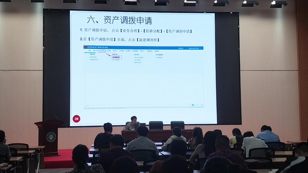会上,杨丹介绍说明了教育部信息化标杆院校建设中数据完善的重要性。随后,姚凌云布置学校资产信息化建设及近期资产管理工作安排。韩海荣在会上就全校资产管理工作作出强调:一要高度重视资产管理工作,各部门要专人专管;二要按照“谁使用谁管理、谁受益谁负责”原则,加强管理人才储备;三要提高资产使用效率及安全;四要加强资产信息化、数字化建设及管理。最后,资产设备管理处汪芬科长对资产信息化平台录入、调拨、处置管理等业务流程进行详细解说和培训。