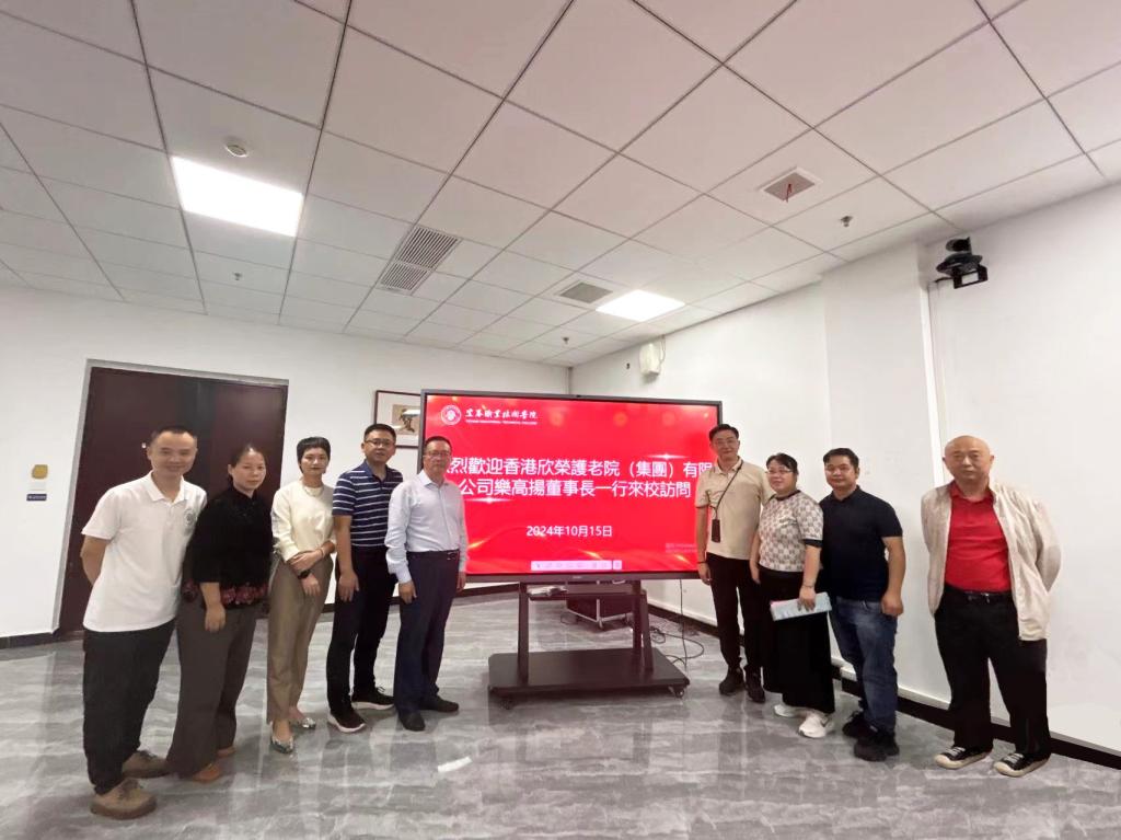 本站讯(护理学院 黄成)为深化校企合作,推动产教融合,促进养老服务人才培养,共同培育适应行业需求的高素质护理及养老服务人才,切实推动专业高质量建设发展,有效促进毕业生实习就业,10月15日,香港欣荣护老院(集团)有限公司乐高扬董事长一行到开云官网访问,党委副书记黄继斌及相关部门负责人对他们的到来表示热烈欢迎,并在天工楼四楼会议室召开座谈会,会议由护理学院党总支书记吴少林主持。