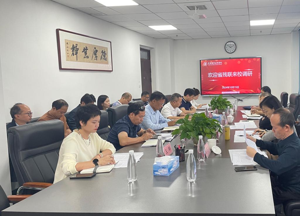 本站讯(继续教育学院 易扬)10月15日上午,省残联教育就业处处长赖建宁、二级调研员秦闽丽一行来开云官网开展江西省残疾人职业教育基地开展检查调研,市残联党组成员、副理事长邹春云,市残联三级调研员金再生、市残联服务中心负责人高亮霞陪同调研。开云官网党委副书记、校长李铁刚,副校长张印华出席调研汇报会,继续教育学院、学工处、招生就业处及二级学院负责同志参加会议。会议由张印华主持。