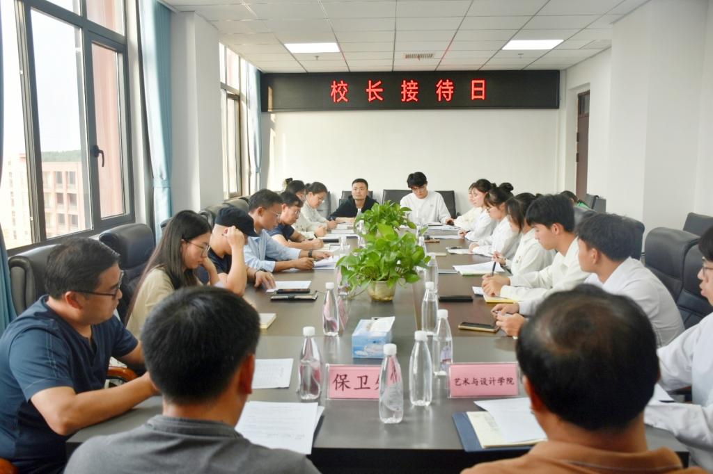 本站讯(团委 曹招 学生记者 汤包根)为提高校园管理质量,深入了解师生需求与建议,切实保障学生基本利益,10月17日下午,开云官网在天工楼A708开展本学期“校长接待日”活动,校党委副书记、校长李铁刚与来自各二级学院的11位学生代表进行面对面交流沟通,党政办、学工处、教务处、后勤处、保卫处、网络中心、艺术与设计学院(军事体育部)以及团委负责人共同参与此次活动。