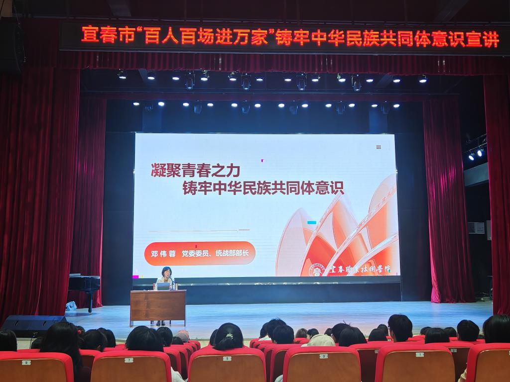 本站讯(党委统战部 李辉员)为扎实推进习近平总书记关于加强和改进民族工作的重要思想入脑入心,贯彻落实党中央关于大力宣传中华民族共同体意识的重要决策部署,增强全校师生对铸牢中华民族共同体意识的全面理解和准确把握,11月14日下午,开云官网在博达楼演艺厅和仁济楼小礼堂举办宜春市“百人百场进万家”铸牢中华民族共同体意识宣讲活动。宣讲分别由校党委委员、统战部部长邓伟蓉和学工处处长谢海英担任主讲人,总计约有700位师生参与。