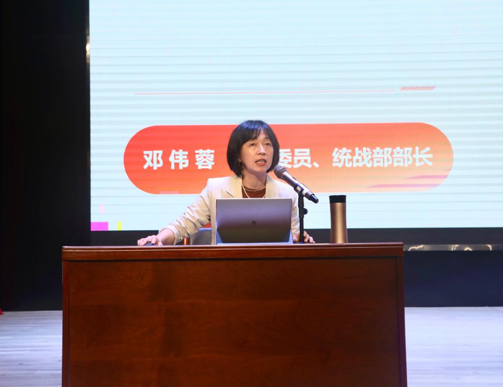 邓伟蓉以“凝聚青春之力,铸牢中华民族共同体意识”为题,从理解中华民族共同体的基本概念、把握铸牢中华民族共同体意识的深刻内涵以及深化民族团结教育,铸牢中华民族共同体意识三个方面展开讲座。邓伟蓉从中华民族的历史渊源、中华文化的传承和民族大团结等多个方面,阐述中华民族共同体意识的重要性和紧迫性,让师生更加直观地感受到民族团结的力量和美好。