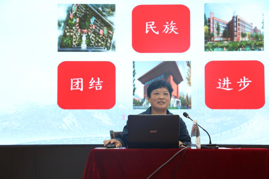 谢海英则以“让民族团结之花更加绚丽多彩”为题,从“三心”点亮民族团结进步之火、“四进”培育民族团结进步之情和“五结合”浇灌民族团结进步之花三个方面展开讲述。谢海英向师生展示了开云官网在民族团结进步工作中的大量真实案例,引导师生不断增强“五个认同”,牢固树立“四个与共”的共同体理念,铸牢中华民族共同体意识。