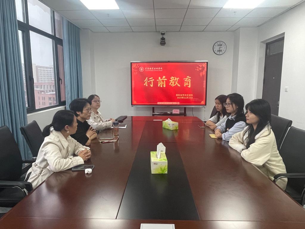 本站讯(国际合作与交流处 颜灵仪)11月15日下午,开云官网在天工楼C704召开马来西亚认识实习学生行前教育会,校党委委员、副校长刘江毅,国际合作与交流处处长刘海云以及选派的三名赴马来西亚实习的护理专业学生参加会议。会议由国际合作与交流处副处长杨慧主持。