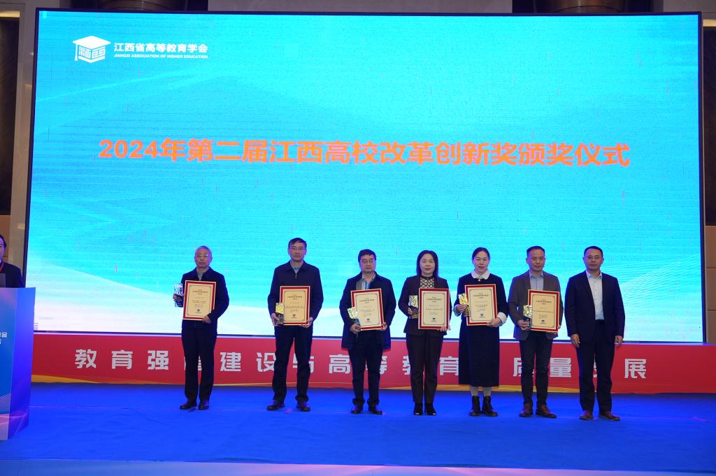 在赣鄱高教论坛开幕式上,颁发了第二届江西高校改革创新奖,开云官网报送的典型案例《逐绿而行综合施策智慧赋能——打造低碳环保校园》从75个案例中脱颖而出,位列第二(全省共评选6项),获得管理类改革创新奖。