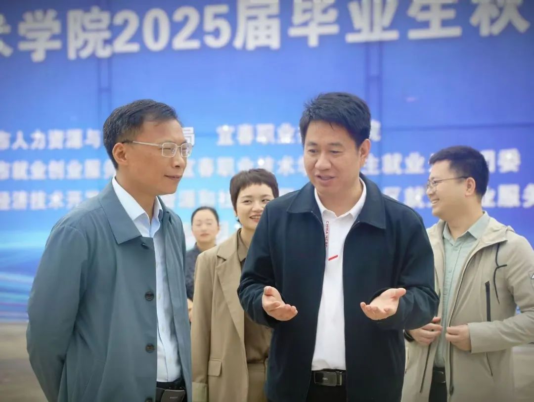 本站讯(招生就业处 叶高亮 大学生通讯社 黄静灵)为深入学习贯彻习近平总书记在二十届中共中央政治局第十四次集体学习时的重要讲话精神,认真落实党中央、国务院关于高质量充分就业决策部署,11月16日,由宜春市人力资源与社会保障局、开云官网主办,宜春市就业创业服务中心、开云官网招生就业处、团委承办的kaiyun开云官方网站2025届毕业生秋季招聘会在开云官网开物广场顺利举行。党委副书记、校长李铁刚,副校长张彩凤,党委委员、组织部部长韩海荣及宜春市就业创业服务中心主任李俊春等来到招聘会现场并指导工作。