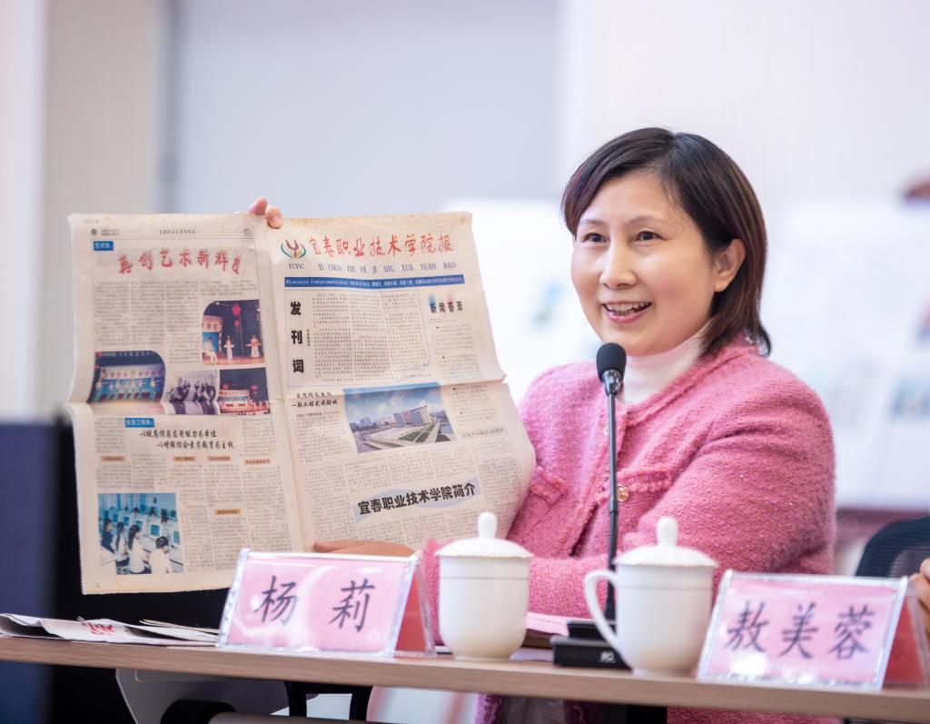 座谈交流环节,作为创刊人的杨莉手持《宜春职院》报第一期,饱含深情地回顾了她与校报的成长故事,阐释自己对校报的深厚情谊,并表示无论媒体形态怎么改变,党报的初心始终不变,期待一代又一代校报人能将校报办得更好,用心用情做好校报;易滨秀从油墨香回顾一代代校报人的坚守和心血,她希望校报继续坚持“办报育人”的理念,多出精品、办出特色,提升高校校报的办报质量和水平,探索发展新模式和新途径,助推学校宣传工作上新台阶。