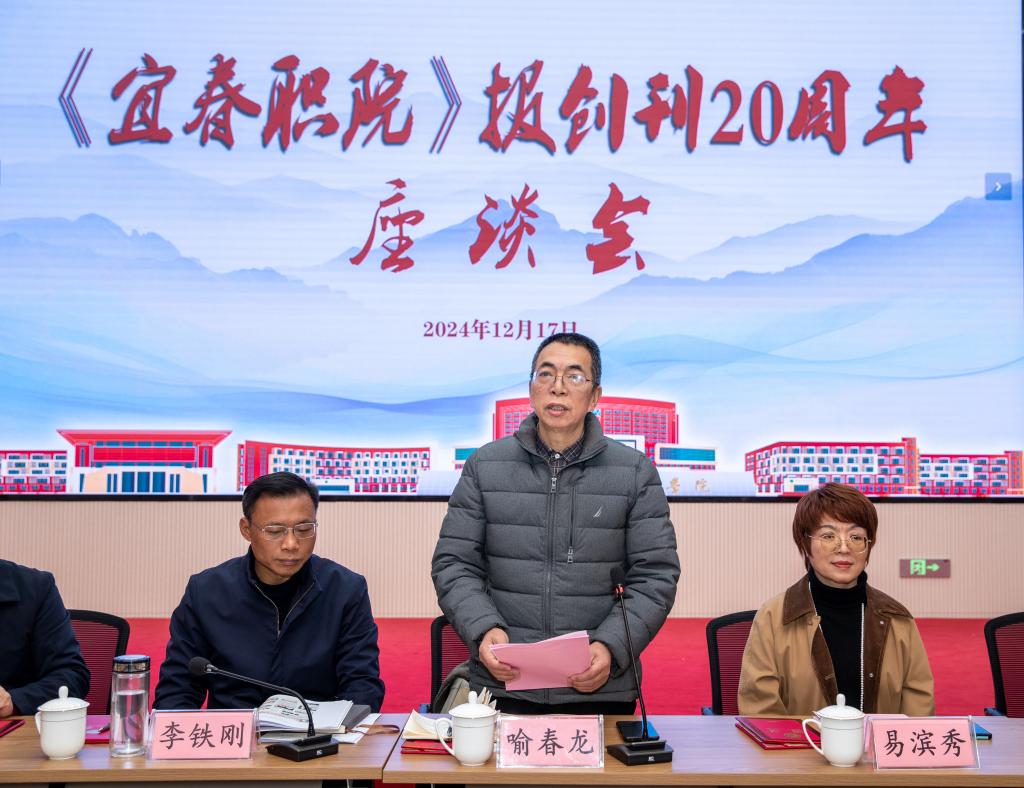李铁刚代表学校党委行政向《宜春职院》报20华诞表示热烈祝贺。他指出,《宜春职院》报作为学校党委机关报和学校主流媒体,始终坚守党的初心使命,深入聚焦“双高”建设、学校高质量发展等重大主题,生动讲述宜职好故事,广泛传播宜职好声音,有效提升了学校美誉度和影响力,为学校事业发展作出积极贡献。李铁刚就做好学校校报工作提出四点建议。一是要守初心,担使命,强化政治担当。深入学习贯彻党的教育方针,围绕学校的中心工作和发展战略,精心策划报道主题,深入挖掘新闻素材,推出更多有深度、有温度、有力度的新闻作品,为学校的改革发展提供强大的舆论支持和精神动力;二是要建队伍,强能力,提升专业素养。打造一支政治过硬、业务精湛、作风优良的校报工作队伍是提升校报质量的关键,要加强学习,定期组织业务培训,提升校报工作人员在新闻采编、排版设计、新媒体运用等方面的专业技能;三是重改革,创品牌,开拓创新思维。要明确报纸改革的目标任务、重点和要求,找准改革切入点和突破口,加快推进系统性变革,更好塑造舆论新格局;四是聚合力,谋发展,提升办报水平。全体师生、校友携手并肩,积极提供新闻线索、素材资源,配合专题报道与活动宣传,加强同校外媒体合作,在多元协同中铸就学校发展新辉煌。