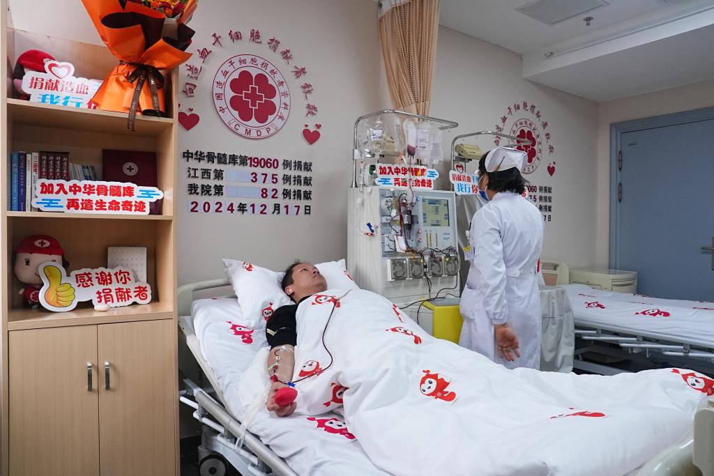 2024年9月,郭宇航接到了宜春市红十字会的电话,当得知自己与一位血液病患者初步配型成功,他毫不犹豫就坚定了捐献意愿:“从加入中华骨髓库的那一刻起,我就做好了准备,没什么好犹豫的。”在整个过程中,郭宇航得到了单位、家人的全力支持:“一开始,父母也会担心我的身体,但在红十字会工作人员的科普下,他们消除了顾虑,支持我的选择。”