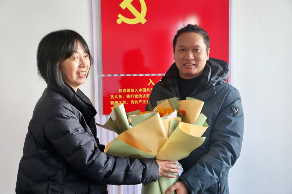 阳光下,鲜花映红了郭宇航的脸庞,那笑容格外灿烂。