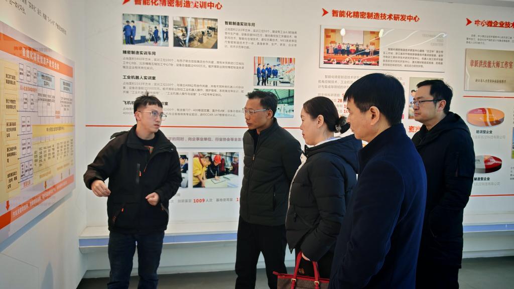 在金华职业技术大学,李铁刚一行参观校史馆和精密制造产教园,双方就如何提高教师干事创业积极性和产教融合质量等方面进行深入交流。