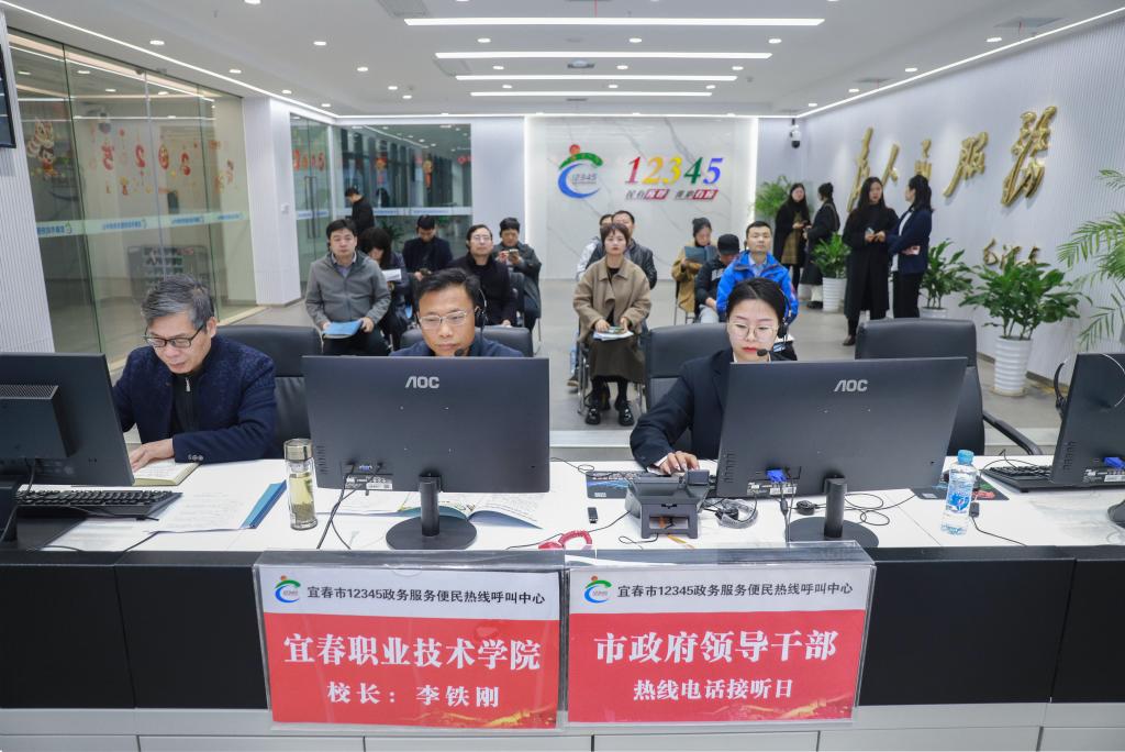 本站讯(党政办 方观洋)3月13日上午,校党委副书记、校长李铁刚带领党政办、学工处、教务处、招就处、继续教育学院等9个部门负责人走进宜春市12345政务服务便民热线呼叫中心,现场接听市民来电,倾听群众呼声,为群众排忧解难。