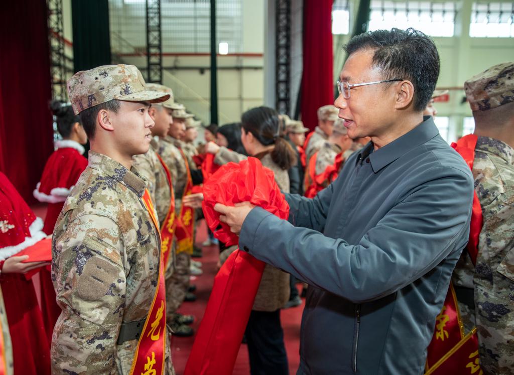 李铁刚代表学校向光荣入伍的学子表示祝贺。他在致辞中指出,投身军营是青年学子锤炼品格、报效祖国的崇高选择,勉励新兵们传承学校“尚德尚贤、惟精惟一”的校训精神,扎根军营、苦练本领,争做“有灵魂、有本事、有血性、有品德”的新时代军人。他深情嘱托新兵战士们:以“尚德尚贤”铸就忠诚品格;以“惟精惟一”锤炼打赢本领;以“知行合一”彰显家国担当。母校永远是你们的坚强后盾,期待你们捷报频传!
