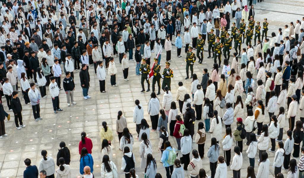 李铁刚作国旗下的讲话。他强调:回望过去,红色基因是熔铸忠诚的赤子之心;叩问现在,红色基因是永葆初心的力量源泉;展望未来,红色基因是激扬奋斗的精神密码。勉励广大青年学子要铭记历史、珍惜当下,以革命先烈为榜样,树立远大理想,脚踏实地,从点滴做起,以青春之名接过历史的火炬,争做担当作为的践行者。