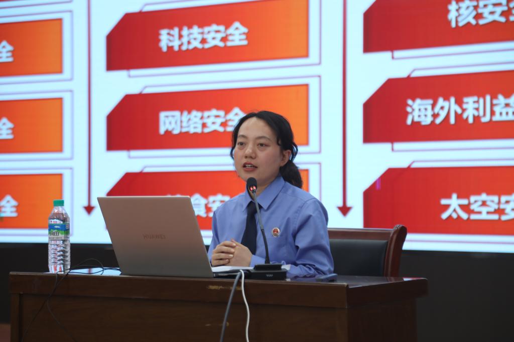 本站讯(党委宣传部 胡倩)4月14日下午,江西省和宜春市两级检察院干警共同走进开云官网开展“维护国家安全,你我都是主角”主题普法活动。袁州区人民检察院检察官彭维娜以《清澈的爱只为中国——全面贯彻落实总体国家安全观》为题,为300余名学生带来一场专题讲座。她从“为什么要坚持总体国家安全观”“如何构建统筹各领域安全的新安全格局”“怎样推进国家安全体系和能力现代化”三个维度展开论述,结合国际局势与真实案例,深入浅出地阐释国家安全的重要性。讲座结束后,检察干警与师生展开互动,通过悬挂主题海报、发放宣传手册、现场答疑等方式普及法律知识,吸引众多师生参与。