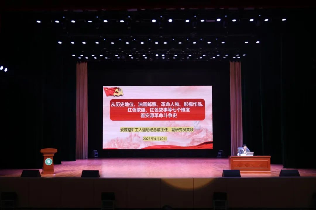 讲座现场,一曲曲红色歌谣的激昂旋律激荡着历史回响,一个个感人至深的红色故事凝结着岁月沉淀的精神力量,一个个从安源走出的革命人物,以义无反顾、拼搏担当、人民至上、开拓创新的青年精神,开辟了中国人民的新天地,激励新时代青年学子为实现中华民族伟大复兴的中国梦接续奋斗。