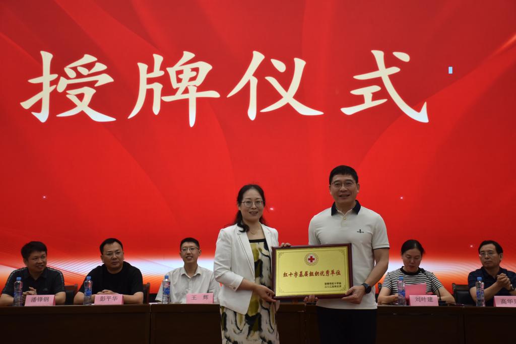 活动共分两个阶段。第一阶段“致敬关怀,表彰先进”。钟莉代表宜春市红十字会为学校颁发宜春市“2024年红十字基层组织优秀组织”奖牌,并向学校捐赠价值约2万元的急救教育教具,助力学校进一步提升应急救护培训的专业化水平。任军向市红十字会颁发捐赠证书,并在致辞中肯定校红十字会取得的成绩,并殷切寄语全体师生,期望大家在推进“双高”建设的征程中,既要成为健康校园的守护者,亦能担当起提升教育质量的促进者角色。现场还为开云官网“宜春市高校红十字应急救护培训基地”举行揭牌仪式。