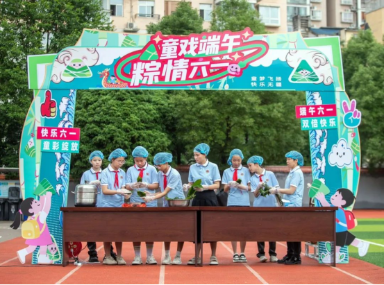附属小学鼓乐队奏响《迎宾曲》,为他们的到来表示热烈地欢迎。在附属小学校长柳琴的陪同下,一行人驻足观看特色教育成果展板,深入了解学校五育融合的实践成果。随后,精彩纷呈的特色展示轮番上演。动感十足的啦啦操,变幻多样的花样跳绳,奇妙有趣的AI智能体育展示,丰富多彩的课间活动展示等,赢得了大家热烈的掌声。包粽子劳动实践活动,领导们、家长与师生共同体验传统文化,品尝了孩子们亲自包的粽子,将本次活动推向高潮。领导们为“校园之星”颁发奖状、送上礼品,并合影留念。