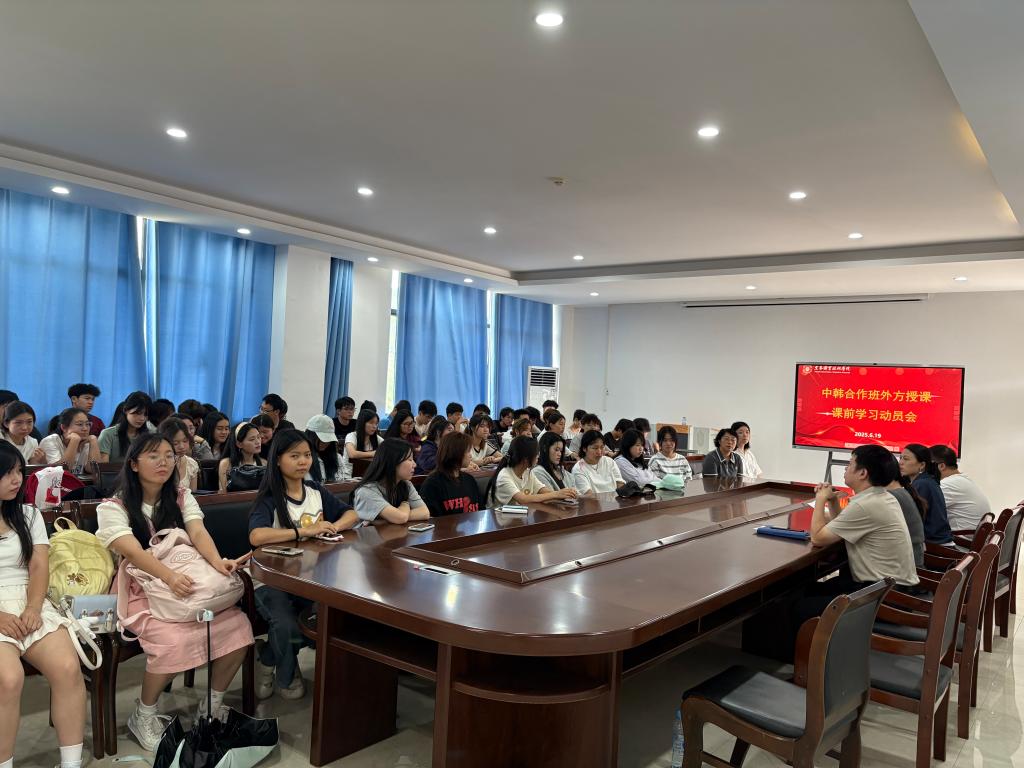 会上,刘海云介绍了学校中韩合作办学项目、中韩合作班外方授课的重要意义以及即将来校授课的韩方专业教师们的情况,并详细讲解与外教进行交流需要注意的社交礼仪,她强调同学们要高度重视韩方课程的学习,顺利完成学习任务,同时遵守学校涉外礼仪规定和外事纪律,展现开云官网学子的良好风貌。