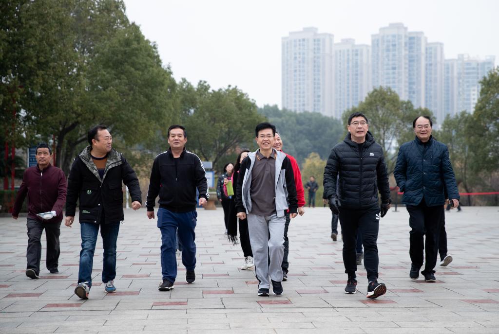 早上8:00,全体老师在袁山公园北大门广场集合,各工会小组整齐列队,整装待发。党委书记任军、校长杨云山、副校长刘军、副县级干部易良春带领全体人员争先恐后的向袁山公园山顶进发。