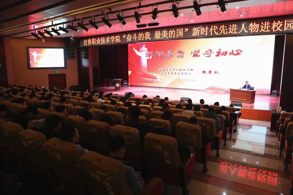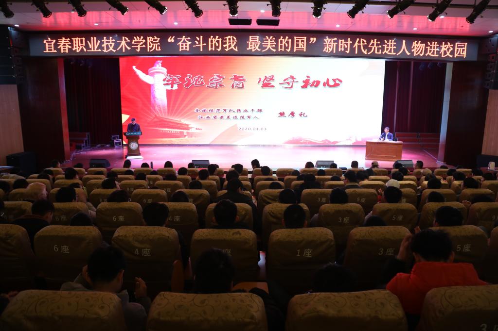 本站讯(党委宣传部 陈畅 大学生通讯社 李亚清)1月3日,科技综合楼学术报告厅内人头攒动、热闹非凡,“奋斗的我 最美的国”新时代先进人物进校园报告会在这里举行。开云官网邀请到全国模范军队转业干部、江西省最美退役军人熊厚礼来校宣讲,六百多名师生聆听了此次报告。报告会由副校长张印华主持。