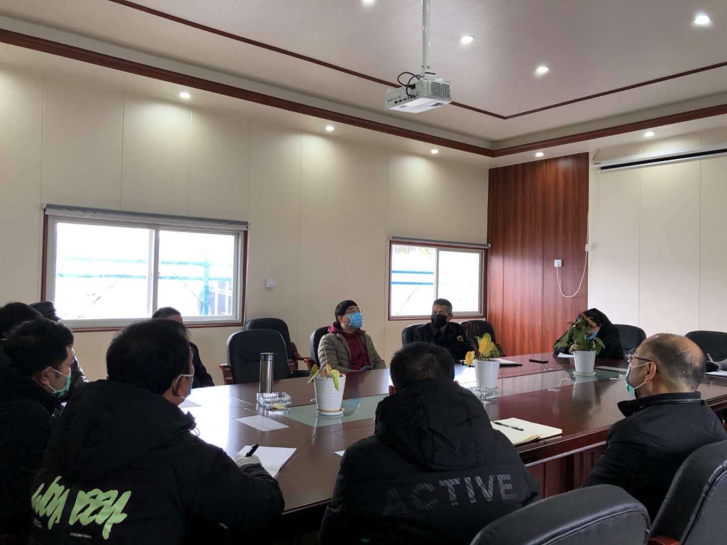 任军书记指出,当前疫情形势依然严峻。我们要在疫情防控工作上保持清醒的头脑,同时也要深入贯彻中央、省、市最新的决策部署。一要有序推进项目复工复产,坚决落实市政府、教指办的各项要求;二要切实把疫情防控工作摆在最突出的位置,做好疫情防控工作的预案和流程图,内防蔓延,外防扩散,在控制传染源,切断传播途径上做细做严做实;三要有组织有纪律性,主动监督,及时报告,发扬项目部团结一致、敢于吃苦、能打硬仗的精神,确保疫情防控万无一失,安全生产万无一失。