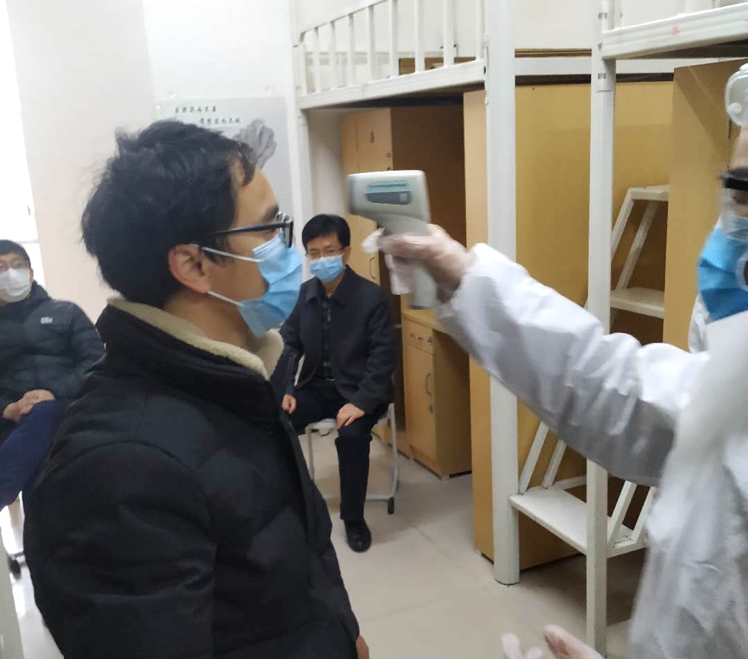 接到电话5分钟后,应急小分队医务人员身着全套防护装备赶到现场,开始问诊及流行病学调查。经简单询问后,患者立即由专车送至定点医院发热门诊进行排查,同寝室及班级密切接触人员进入学校健康隔离区观察。