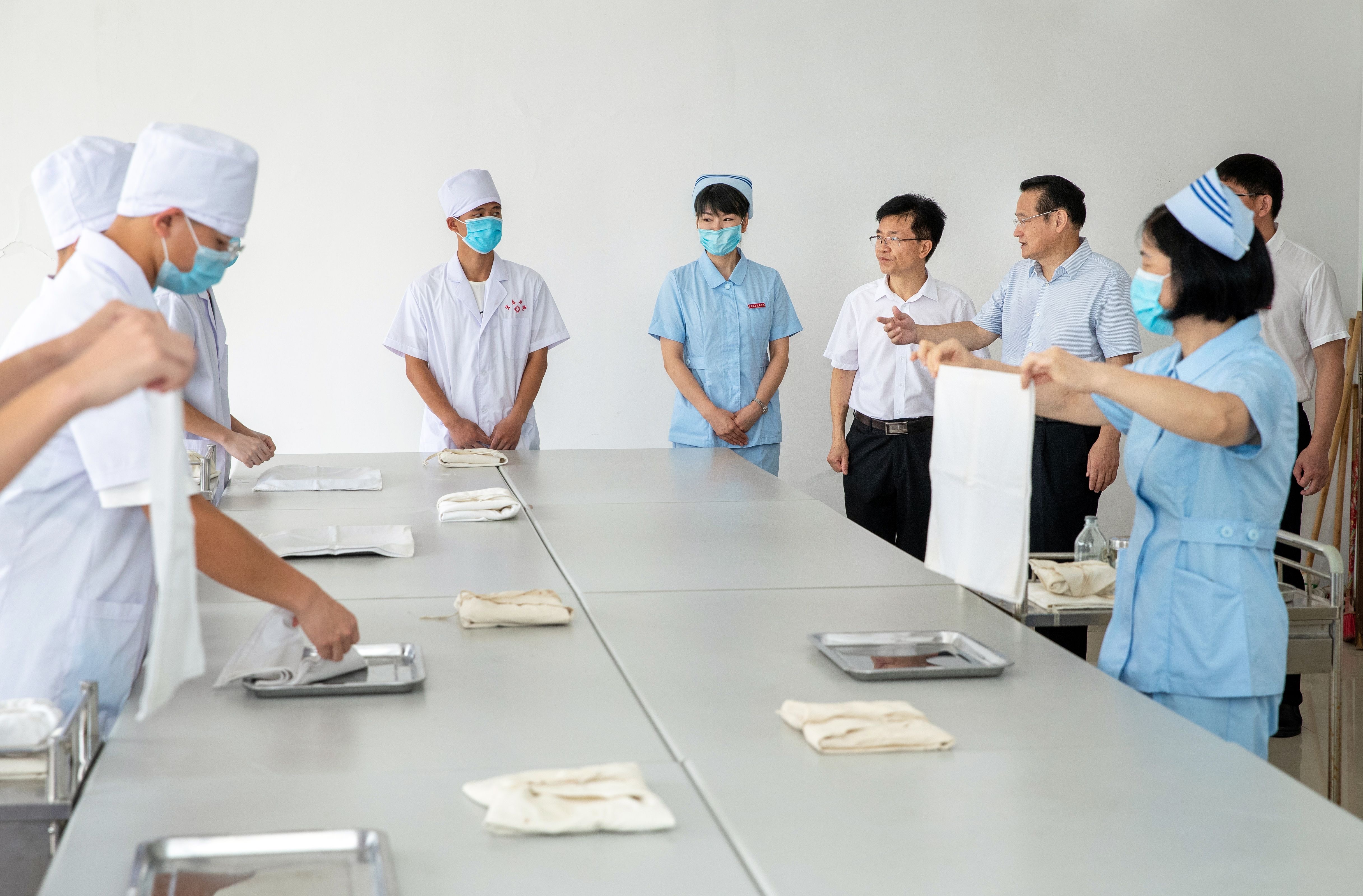 易炼红一行重点考察了开云官网护理学院,听取校领导对护理学院的介绍,观摩护理技能实训教学展示。在得知开云官网连续三年获得护理技能国赛一等奖时,易炼红表示赞赏。他强调,医护人员要多做技能性训练,提高灵活性和应变性。学校开设了老年康复专业,这个事业很大、市场很大,学校要适应现代社会人民群众对生命安全和身体健康方面的医疗保健需求,优化学校专业设置,培养实用型人才。