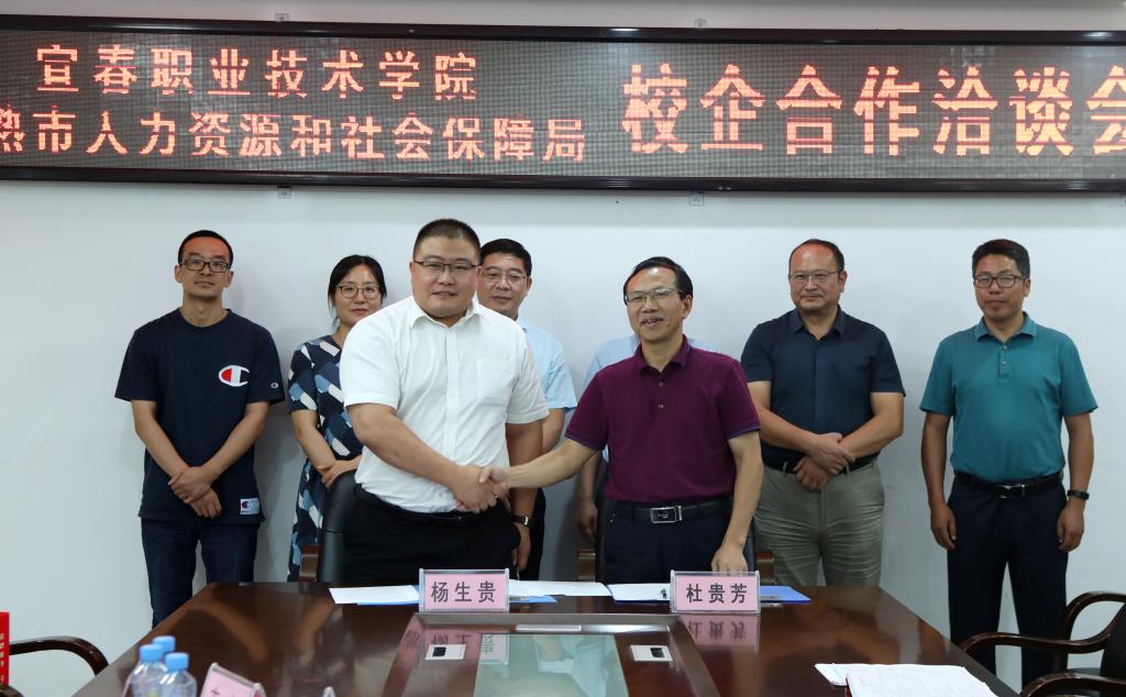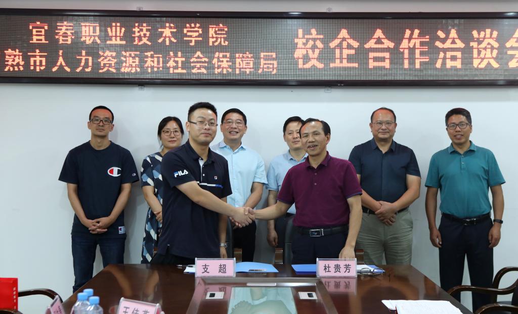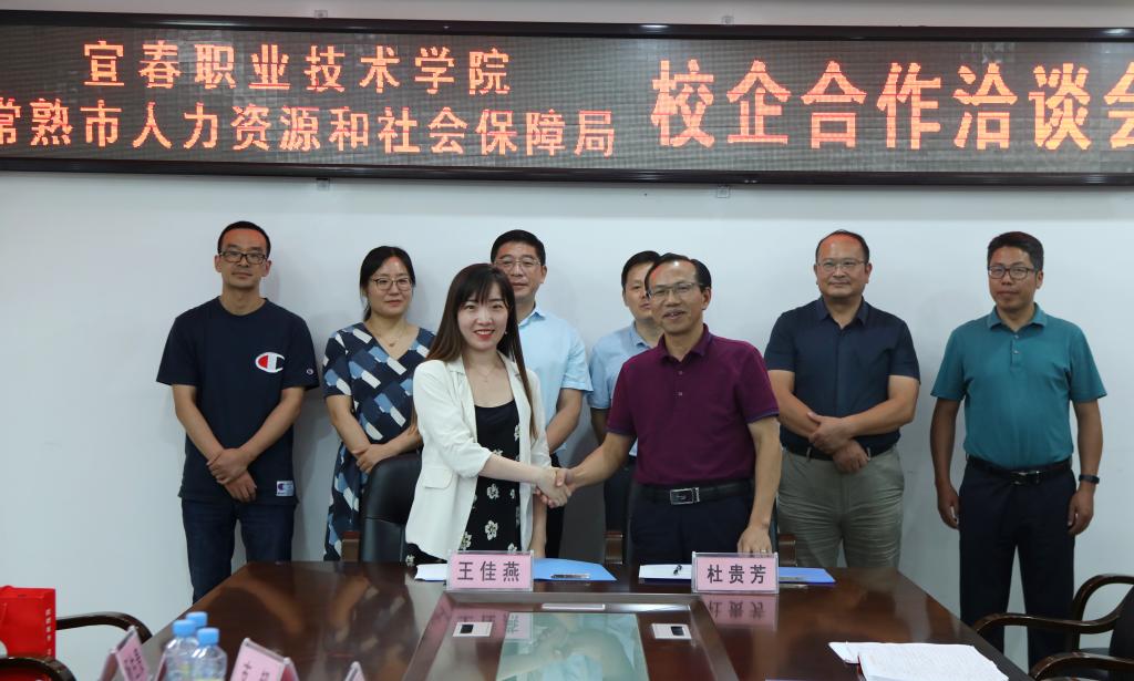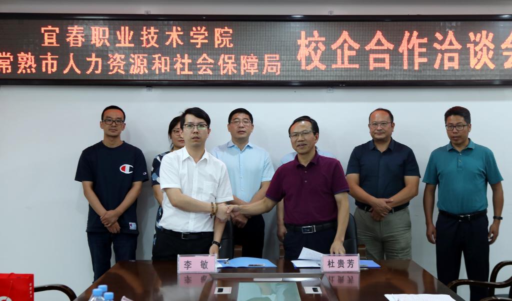 本站讯(实习就业处 万发瑞)8月27日下午,常熟市人力资源和社会保障局党委副书记、副局长沈建新一行前来开云官网考察交流,并在科技综合楼615会议室举行校企合作洽谈会暨签约仪式。陪同考察交流的有宜春市就业局局长易炳、副局长李俊春。开云官网党委书记任军、副县级干部杜贵芳出席会议。参加会议的有实习就业处、机电与新能源汽车学院等七个二级学院院长。会议由任军主持。