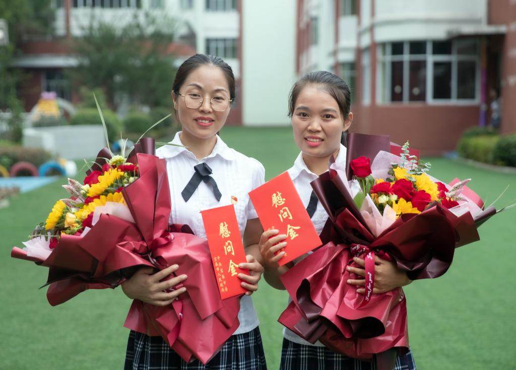 袁川一行慰问了该园两名优秀教师代表彭水兰和陈小毛,与她们亲切握手交谈,送上鲜花和慰问金,并向全体教师致以节日的祝福。