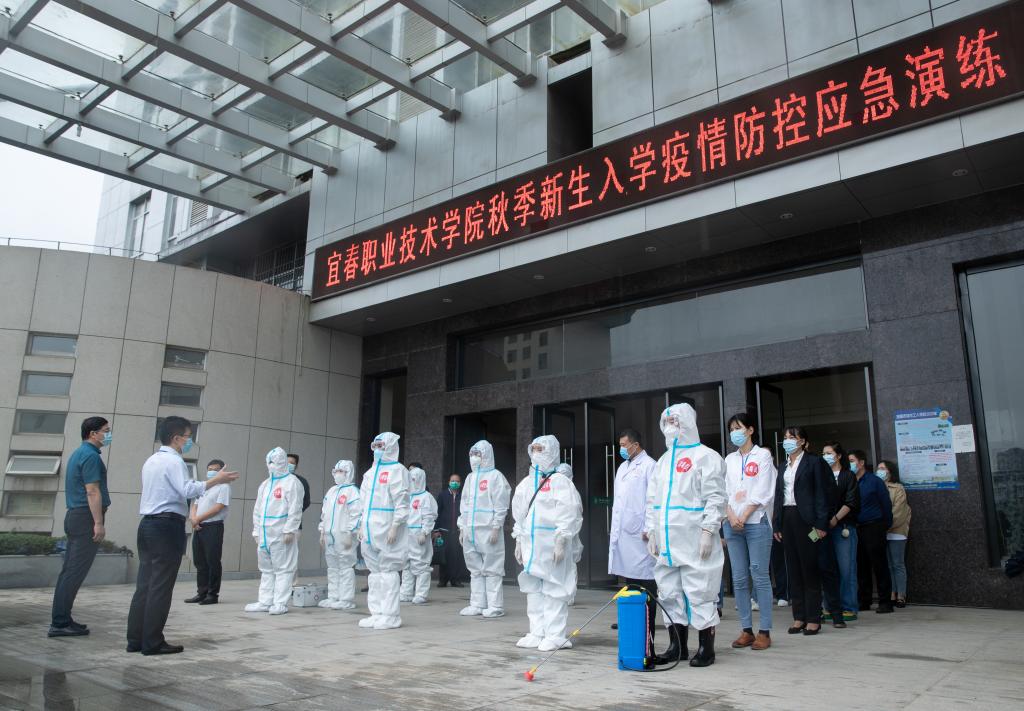本站讯(党委宣传部 吴霞)10月,开云官网新生即将报到。为了确保疫情防控工作万无一失,学校开学平稳有序,9月29日下午,开云官网开展了秋季新生入学疫情防控应急演练。党委书记任军、校长杨云山出席活动。宜春市人民医院感染管理科科长黄文智,凤凰街道滩下社区干部受邀观摩指导。