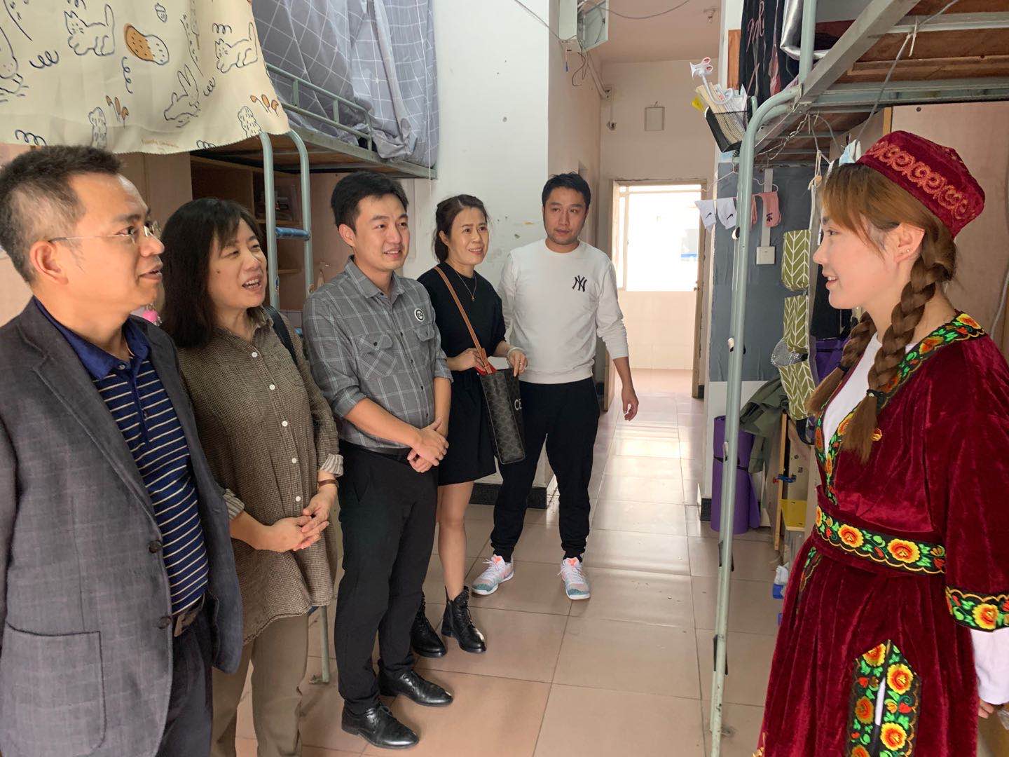 在女生宿舍时分别看望了来自新疆和江西分宜的同学。其中,来自维吾尔族的同学传统服饰迎接老师们的到来,张校长认真了解其家庭情况,和学习生活情况,亲切询问该生的饮食、住宿等情况,并送上慰问金、月饼和水果,并叮嘱其勤奋学习,坚定信念,以优异的成绩回报社会。