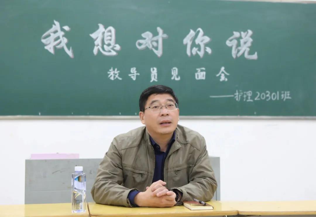 校党委书记任军担任护理学院20301班教导员。他希望大家彼此珍惜,把友谊作为一辈子的财富;希望大家尊重彼此的习惯,做到自律。他还对同学们提出:要有团队精神、友爱精神、仁爱之心和良好的学习习惯,希望大家都做一个有情怀、有人文修养、有生活技巧技能的人。