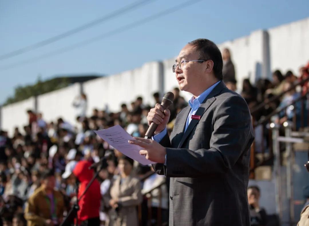 杨云山向师生们发出号召:让我们以运动会为契机,亲近自然,热爱运动,积极参加全民健身、阳光体育运动,推动健身和健康深度融合,着力形成热爱体育、参与健身、崇尚健康的良好氛围,为新时代学校高质量发展提供强大的健康保障!