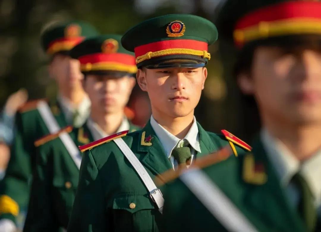 告别了精彩的表演,国旗队、国旗护卫队、校旗、会徽和徽标等队伍踏着激越的步伐相继向主席台走来。