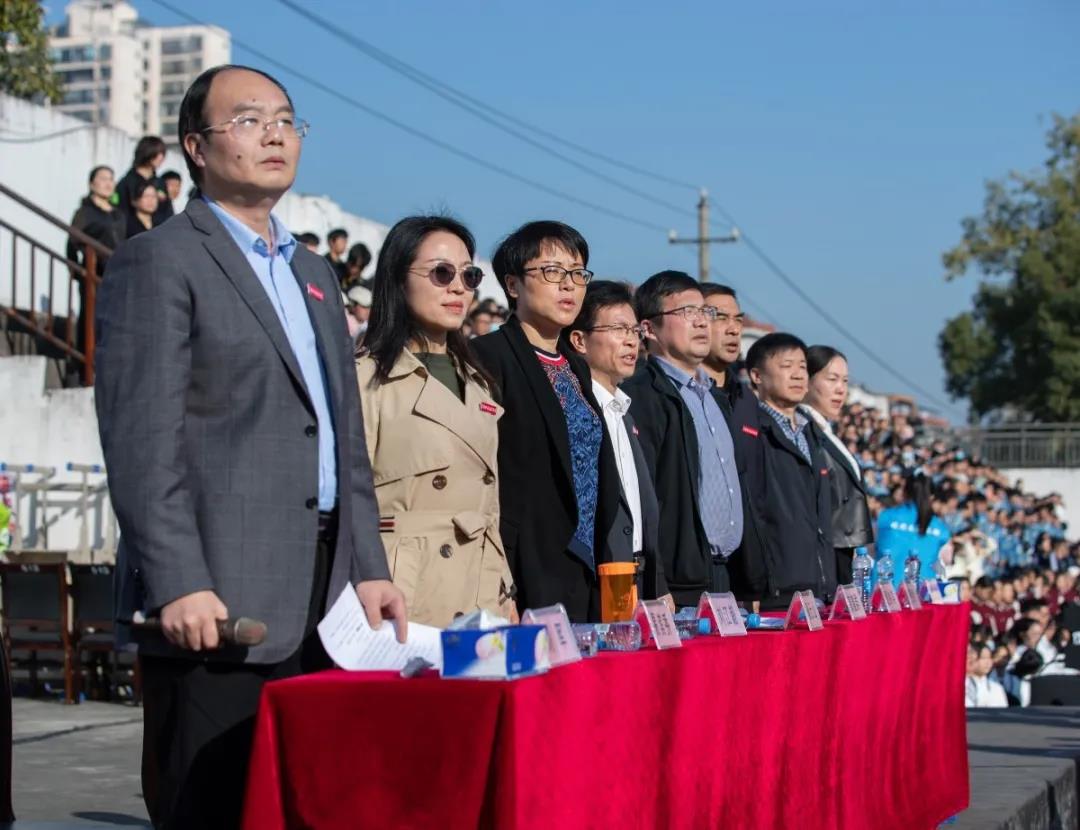 全员齐唱国歌后,杨云山致辞。他对本届校运会的召开表示热烈的祝贺!他说,一直以来,学校致力于推进体育教学改革,蓬勃开展群众性体育活动,各项体育活动取得了优异成绩。在爱生如子的理念下,学校不断增进健康成长的教育理念,开齐开足体育课,帮助同学们在体育锻炼中享受乐趣、增强体质、健全人格、锤炼意志,努力把同学们培养成为德智体美劳全面发展的社会主义建设者和接班人。