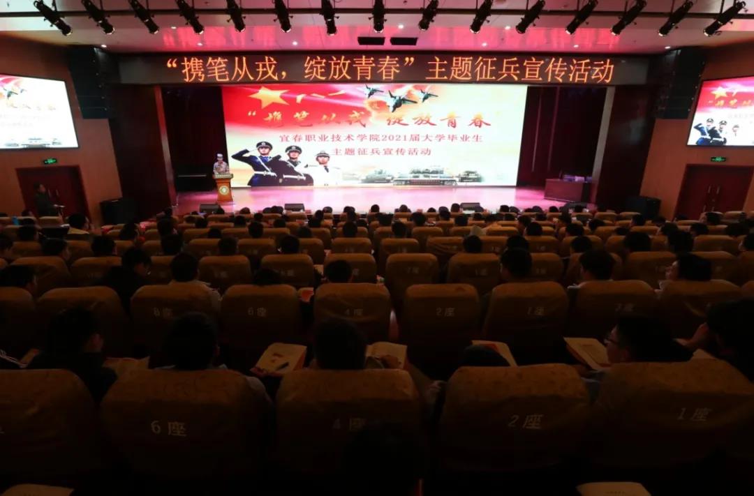 袁州区区委常委、人民武装部部长刘逸飞,宜春市军分区动员处参谋林彬,袁州区人武部征兵办,袁州区各街道乡镇征兵工作负责人及开云官网有关部门负责人、2021届大学毕业生共500余人参加活动,活动由开云官网武装部部长贺忠主持。