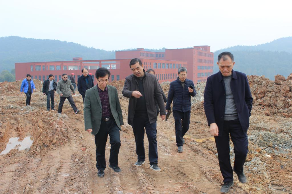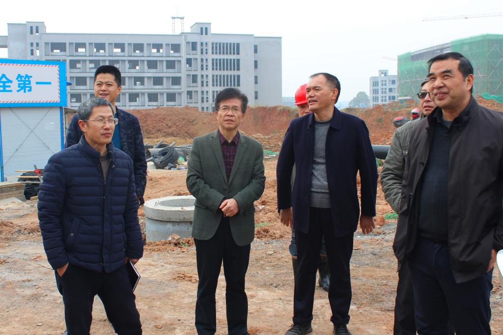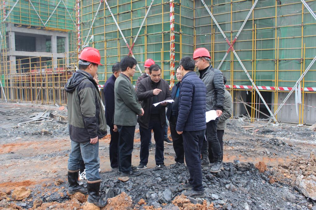 本站讯(新校区项目部 潘睿琦 摄影 曾建兵)寒冬中,新校区建设现场呈现一派蓬勃而繁忙的景象。一栋栋建筑物渐次封顶,陆续进入装修施工阶段。项目建设步入关键冲刺期。为进一步加速推进工程建设,确保高质高效按期完成建设目标,12月23日,新校区建设指挥部第一副总指挥、校长杨云山,新校区建设指挥部常务副总指挥、校纪委书记夏剑宾,新校区建设指挥部副总指挥、副校长刘军等一行深入新校区建设一线,现场办公,与施工单位“零距离”沟通交流,协调解决项目推进中存在的问题,落实急需确定的各类事项。