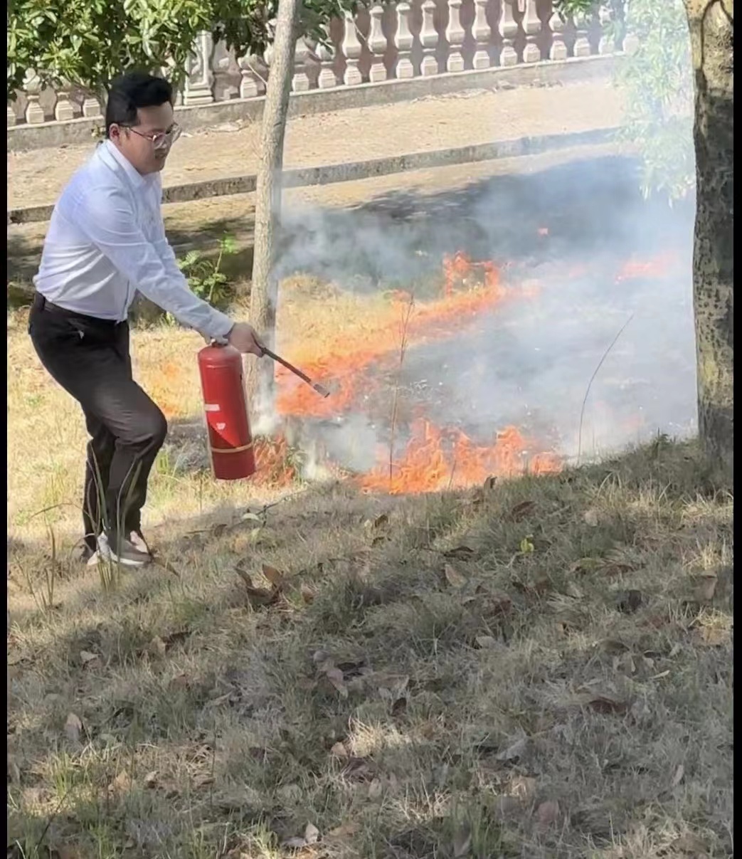 李翔向火点喷洒灭火剂,当发现灭火器数量不足时,他们又去运输另一批,确保灭火工作持续进行。在师生们的努力下,火势得到了有效控制。消防队员等人相继抵达现场,在众人的协同作战下,大火被成功扑灭。