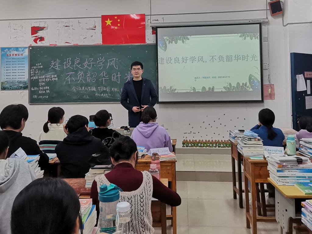 会议开始各班总结了上学期学习成绩、学风建设工作情况,交流了寒假实践和学习收获。接着,班主任列举出常见的不良学风现象让同学们对比、反思。最后,班主任围绕日常行为规范、课堂纪律、宿舍文明等方面,鼓舞同学们的学习热情,要求同学们明确新学期的目标:收拢身心,做好新学期的规划;凝心聚力,提升新学期的干劲。以只争朝夕、时不我待的精神尽快投入新学期的学习。