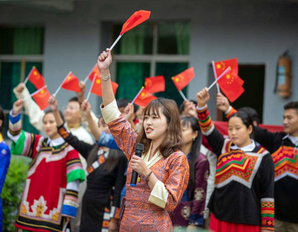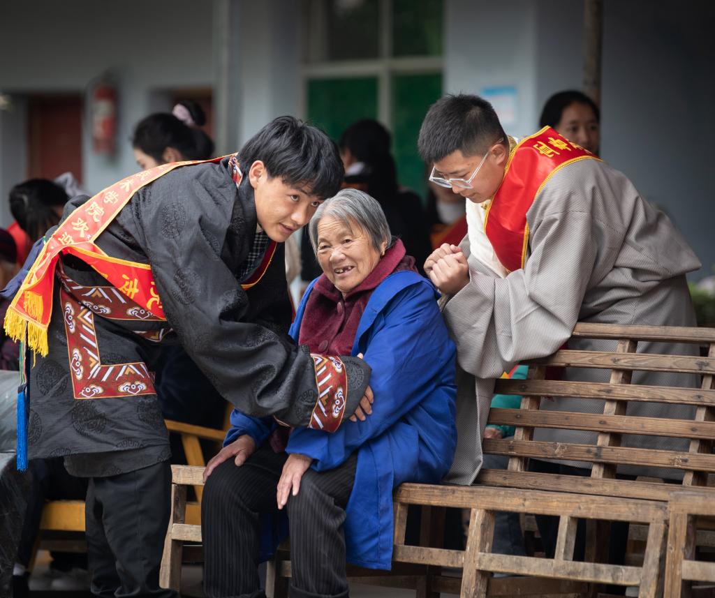 同学们还为老人们精心准备了文艺节目,藏族歌曲《不丹藏歌》、彝族舞蹈《阿寺且》等极具民族特色的节目让老人家们沉醉其中,其乐融融,《歌唱祖国》同学带领爷爷奶奶们挥舞着五星红旗,高声齐唱,更是把气氛推向了高潮。