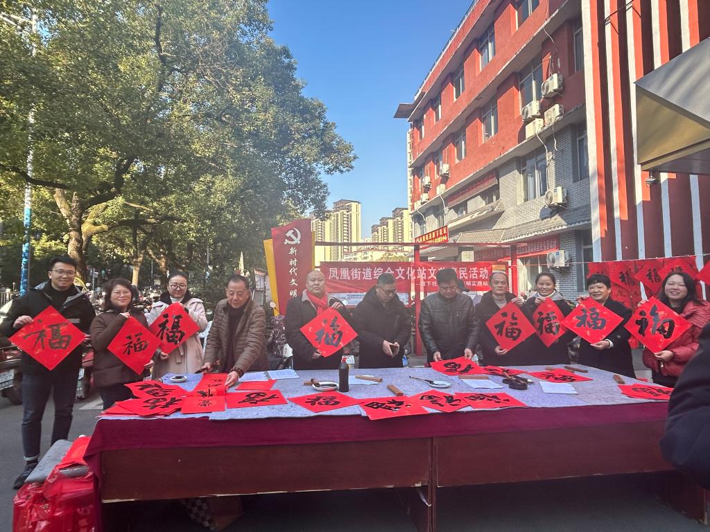 活动现场,墨香四溢,气氛热烈。党员教师们和书法爱好者们齐聚一堂,挥毫泼墨,笔走龙蛇。一幅幅寓意吉祥的春联和一个个苍劲有力的“福”字在他们笔下熠熠生辉,饱含着对居民们的美好祝福。居民们纷纷围聚在书法家周围,欣赏精湛的书法技艺,挑选着自己心仪的春联和“福”字,现场欢声笑语不断。